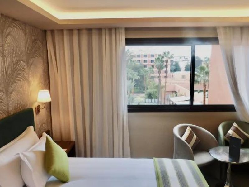 دلل نفسك بزيارة إلى النادي الصحي للاستفادة بخدمات العناية المتكاملة. استمتع بالاستفادة من وسائل الراحة والاستجمام المتاحة مثل 3 من حمامات السباحة المكشوفة وملهى ليلي ونادي صحي. ستجد في هذا الفندق وسائل راحة إضافية تشمل اتصال لاسلكي مجاني بالإنترنت وخدمات الاستعلامات والإرشاد وخدمة مجالسة/رعاية الأطفال مجانا.توقّف لتناول وجبة سريعة في مطعم So zen، وهو واحد من 3 مطاعم موجودة في هذا الفندق، أو أقم هنا واستمتع بالاستفادة من خدمة الغرف على مدار 24 ساعة. وهناك أيضا وجبات خفيفة متوفرة في الكافيتيريا. التقِ بالنزلاء الآخرين وتناول الطعام في حفل استقبال ترحيبي يعقد يومياً. استرخِ مع شراب منعش في واحد من 4 بارات. يتم تقديم بوفيه فطور يوميًا من 6:30 صباحا إلى 10:30 صباحا مقابل رسم إضافي.تضم وسائل الرائحة المميزة اتصال سلكي بشبكة الإنترنت مجانا ومركز لرجال الأعمال مفتوح 24 ساعة وجرائد مجانية في الردهة. تضم هذه المنشأة السياحية 7 غرف اجتماعات متاحة للمناسبات. يتم تأمين حافلة للتوصيل من وإلى المطار لقاء تكلفة إضافية (متوفرة على مدار 24 ساعة)، وتتوفر أيضا خدمة صف السيارات بمعرفة الفندق مجانا في مقر المنشأة.اشعر وكأنك في بيتك بالإقامة في واحدة من 189 غرفة ضيافة تتميز بوجود وحدات ميني بار وتلفزيون بلازما. تحتوي الغرف على شرفات. يُتاح لك اتصال لاسلكي بالإنترنت مجانًا لتبقى على اتصال دائمًا. تتوفر حمامات وحدات دش مع أحواض استحمام بها حوض استحمام عميق ومستلزمات مجانية للعناية الشخصية.يتم عرض المسافات وفقا لأقرب 0,1 كيلومتر. باب الجديد - ٠٫٢ كم Casino de Marrakech - ٠٫٣ كم سايبر بارك - ٠٫٦ كم Ksar Char-Bagh Hammam - ٠٫٨ كم مئذنة الكتبية - ٠٫٨ كم شارع محمد السادس - ٠٫٩ كم منارة مول - ١٫٢ كم جامع الفناء - ١٫٣ كم باب أكناو - ١٫٣ كم مسجد القصبة - ١٫٥ كم مسجد مولاي اليزيد - ١٫٥ كم ساحة 16نوفمبر - ١٫٥ كم رويال تنس هارتي - ١٫٥ كم ساحة الشباب - ١٫٥ كم Souk of the Medina - ١٫٥ كم المطار المُفضّل للوصول إلى سوفيتيل مراكش باليه إمبيريال هو مراكش (RAK - مطار مراكش المنارة) - ٥٫٥ كم إذا أقمت في سوفيتيل مراكش باليه إمبيريال، ستكون في مركز مراكش، على بُعد 10 دقائق بالسيارة عن جامع الفناء وباب الجديد. استمتع بالإقامة في هذا الفندق بتصنيف 5 نجوم، حيث ستكون على بُعد ٢٫٩ كم من حديقة ماجوريل و ٠٫٣ كم من Casino de Marrakech.في الحي الشتوي بمدينة مراكش