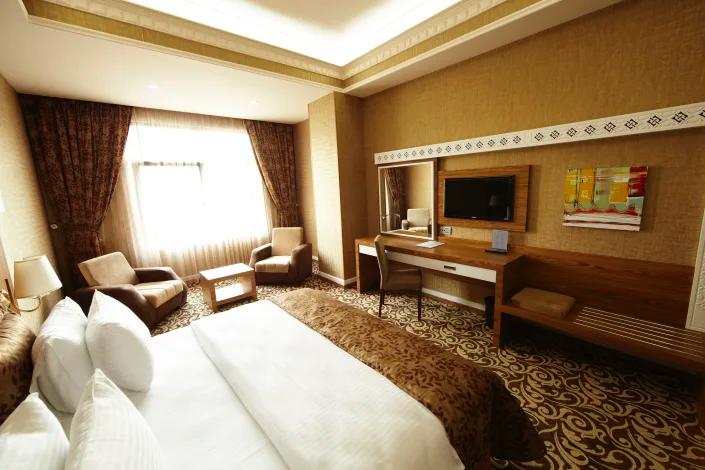 دلل نفسك مع خدمات العناية المتاحة مثل جلسات التدليك. استفِد من وسائل الاستجمام والترفيه المتاحة والتي تشمل ملهى ليلي ونادي صحي وساونا. ستجد في هذا الفندق مزايا إضافية تشمل اتصال لاسلكي مجاني بالإنترنت وخدمات الاستعلامات والإرشاد ومتاجر للهدايا/أكشاك للجرائد.توقّف لتناول وجبة سريعة في مطعم Lobby Bar، وهو واحد من 2 مطاعم موجودة في هذا الفندق، أو أقم هنا واستمتع بالاستفادة من خدمة الغرف على مدار 24 ساعة. وهناك أيضا وجبات خفيفة متوفرة في الكافيتيريا. التقِ بالنزلاء الآخرين وتناول الطعام في حفل استقبال ترحيبي يعقد يومياً. استمتع بتناول شرابك المفضل في البار/الاستراحة. يتاح تقديم بوفيه فطور مقابل رسم إضافي.تضم وسائل الرائحة المميزة مركز لرجال الأعمال وجرائد مجانية في الردهة وخدمة الغسيل/التنظيف الجاف. هل تخطط لإقامة حدث ما في باكو؟ تحتوي هذه المنشأة السياحة على مرافق احتفالات بمساحة 861 قدم مربع (80 متر مربع)، بما في ذلك قاعة مؤتمرات وقاعة اجتماعات. يتم تأمين حافلة للتوصيل من وإلى المطار لقاء تكلفة إضافية (متوفرة على مدار 24 ساعة)، وتتوفر أيضا مواقف سيارات مجانية قائمة على الخدمة الذاتية في مقر المنشأة.اشعر وكأنك في بيتك بالإقامة في واحدة من 62 غرفة ضيافة تتميز بوجود وحدات ميني بار وتلفزيونات بشاشة مسطحة. تتوفر لك إمكانية الدخول على الإنترنت سلكيًا ولاسلكيًا مجانًا لتبقى على اتصال دائمًا، كما تتاح لك قنوات فضائية لمزيد من المتعة والترفيه. تضم الغرف حمامات خاصة بها تجهيزات دش مع مستلزمات مجانية للعناية الشخصية ومجففات شعر. تشتمل وسائل الراحة المتاحة على هواتف، بالإضافة إلى خزنات ومكاتب.يتم عرض المسافات وفقا لأقرب 0,1 كيلومتر. Baku Congress Centre – ٠٫٤ كم حديقة مترو – ٠٫٩ كم مركز حيدر علييف الثقافي – ١٫١ كم مركز غانجليك مول للتسوق – ١٫٢ كم استاد توفيق باخراموف – ١٫٧ كم مركز 28 للتسوق – ٣٫٢ كم War Trophies Park – ٣٫٤ كم مضمار باكو سيتي للسباقات – ٣٫٥ كم مركز أجور للتسوق – ٣٫٦ كم قصر حيدر علييف – ٣٫٩ كم مركز بورت باكو مول للتسوق – ٤ كم مسرح أكاديمية دولة أذربيجان‬ للأوبرا والباليه – ٤٫١ كم مركز بارك بولفار مول للتسوق – ٤٫٣ كم مقر الحكومة – ٤٫٤ كم متنزه نيزناري ميلي – ٤٫٥ كم المطار المُفضّل للوصول إلى ديفان إكسبرس باكو هو باكو (GYD-مطار هيدار ألييف الدولي) – ٢٢٫٥ كم الإقامة في ديفان إكسبرس باكو تضعك في قلب باكو، على بُعد 15 دقيقة سيرا من Baku Congress Centre وحديقة مترو. استمتع بالإقامة في هذا الفندق بتصنيف 4 نجوم، حيث ستكون على بُعد ١ كم من مركز حيدر علييف الثقافي و ٢٫٢ كم من استاد توفيق باخراموف.بالقرب من Baku Congress Centre